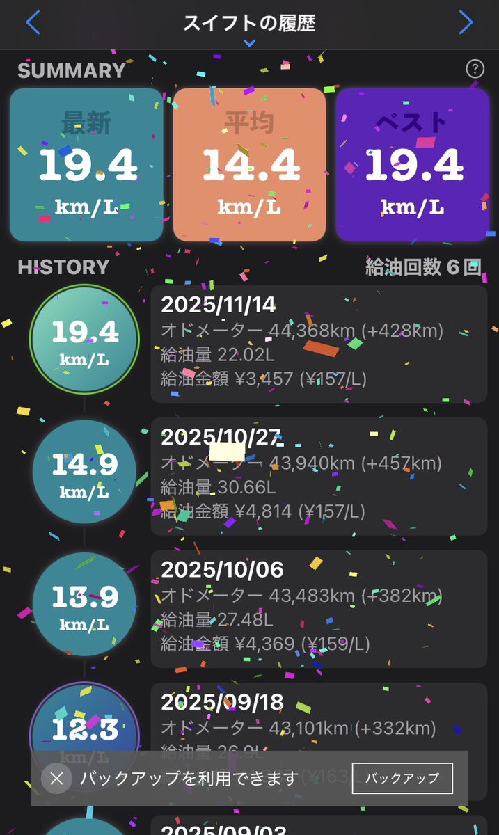 2週続けて紅葉ライトアップを見に行ったお陰?往復渋滞知らずでエアコンオフの高速主体の燃費で21km/L超が出ました! 給油レシートでも20.94km/Lなので誤差は少なそうです #SUZUKI #スペーシアギア #燃費 pic.x.com/bNwnYIEfYY