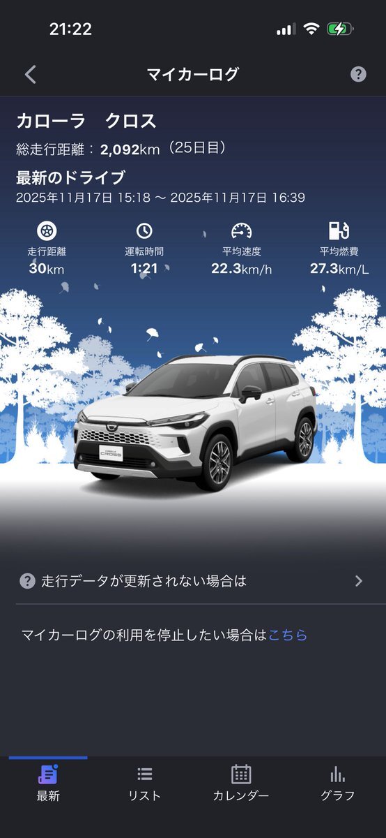 納車後19日目です。 慣らし運転の目標2,000キロを超えました。 どんな乗り方しても燃費が良いのでビックリします。 #カローラクロス #TOYOTA #燃費 pic.x.com/DXXLw7Kp1Z