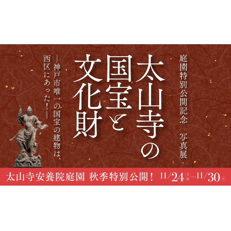 #写真展「太山寺の国宝と文化財」#学園都市駅 にて開催中!11月30日(日)まで event.city.kobe.lg.jp/event/QWlyBj6x… 関連企画「太山寺散歩」は11月29日(土)。事前申込要 event.city.kobe.lg.jp/event/dFlQ8mgt… 国指定名勝 #安養院庭園 は11月24日(月)~30日(日)まで #特別公開 がおこなわれます。 #神戸 #文化財 #神戸市営地下鉄 pic.x.com/jImdwa6BzR