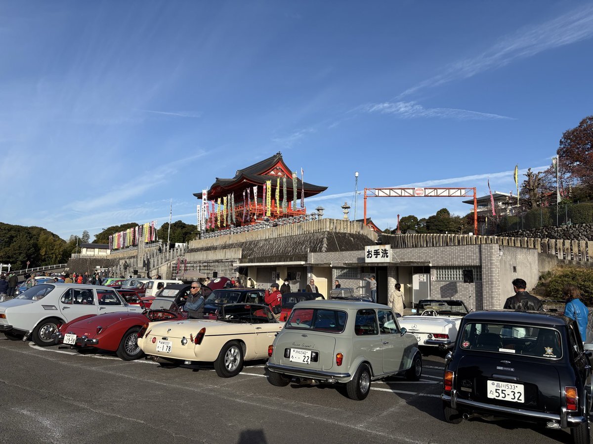 さすが犬山の成田山でのクラシックカーミーティング‥参加者全員の安全祈願🙏素晴らしいですね。第一回とは思えないほどバラエティ豊かなクルマたち‥今後のご発展を応援させていただきます📣😊