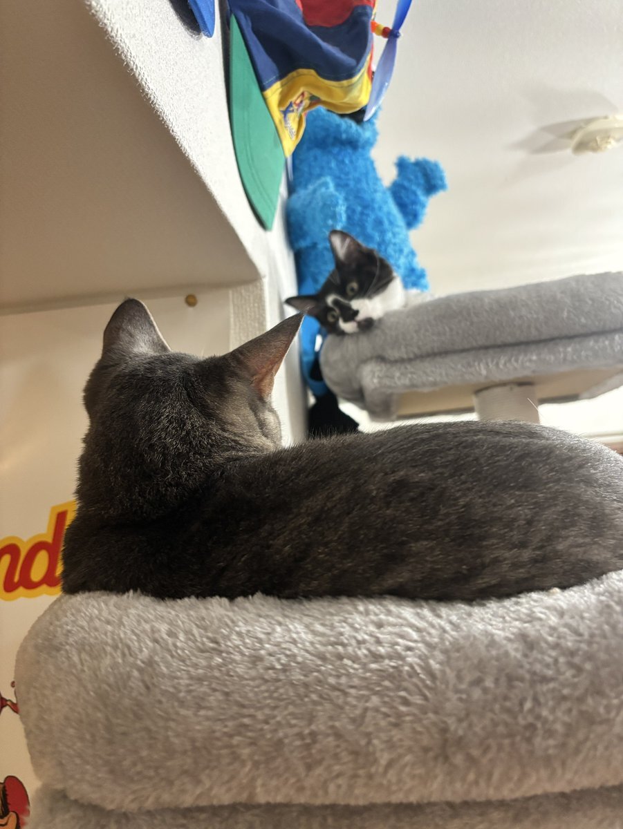 猫って遊び場があるとほんとにイキイキする 安全で楽しい場所を用意すると、ストレス軽減や運動不足の解消にもつながるから、猫のための工夫は大切だよね! #猫の健康 #猫好きさんと繋がりたい #ペットケア