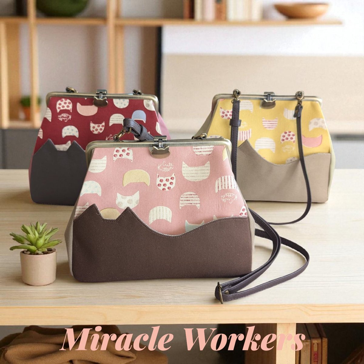 今週末は #にゃんだらけ 猫起こし金具のがま口ショルダーバッグはこっくりしたお色味で3色出品予定。 #MiracleWorkers は【6B05】ブースです #がま口バッグ #猫バッグ #にゃんだらけ19 pic.x.com/BKsDcUI1ji