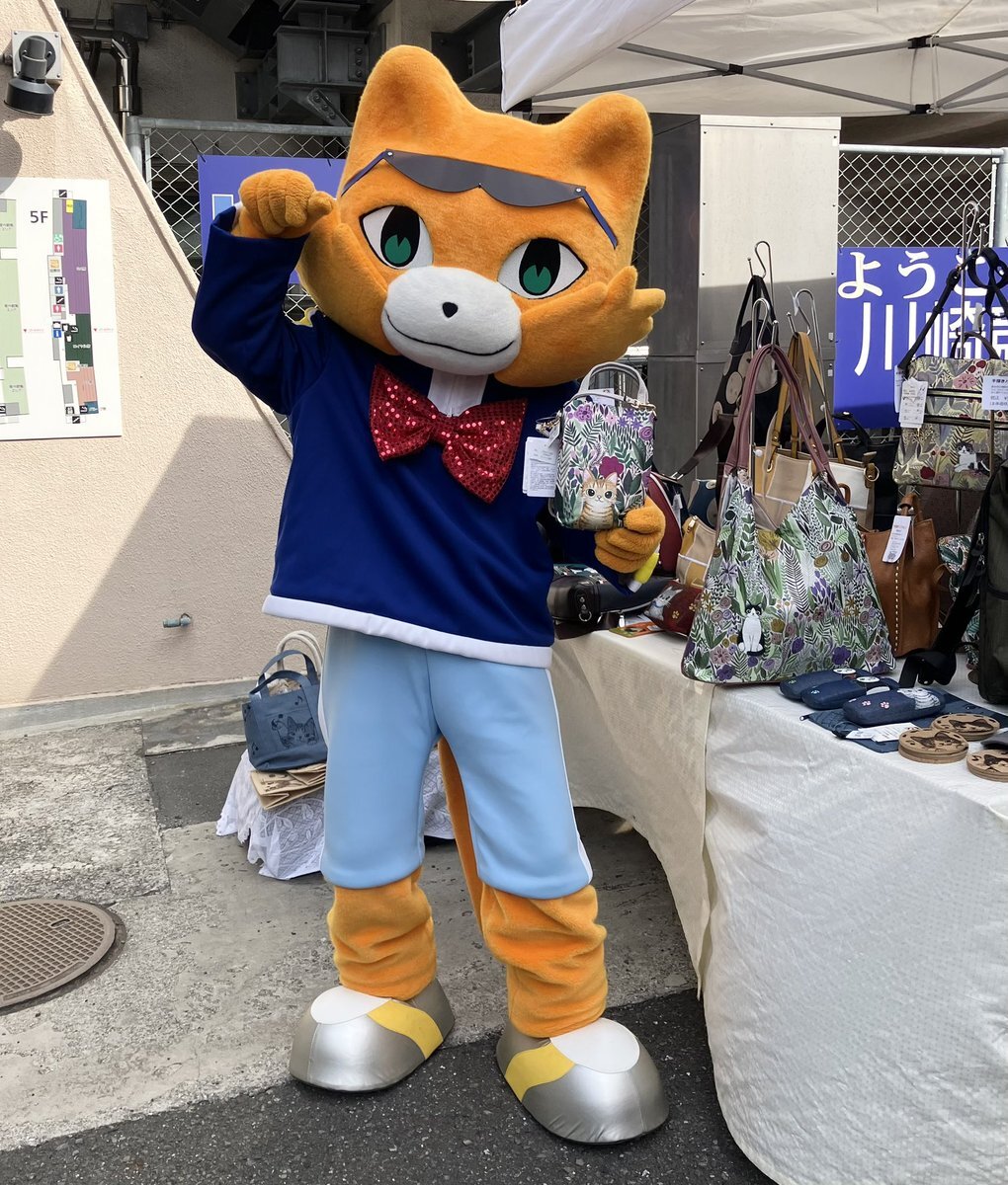 川崎競輪の 九ちゃんが遊びにきてくれました! ノリノリで可愛いかった♪ #川崎競輪マルシェ  #猫雑貨 #猫丸みど #川崎 #川崎競輪  #猫バッグ pic.x.com/6i4WXxEJiq