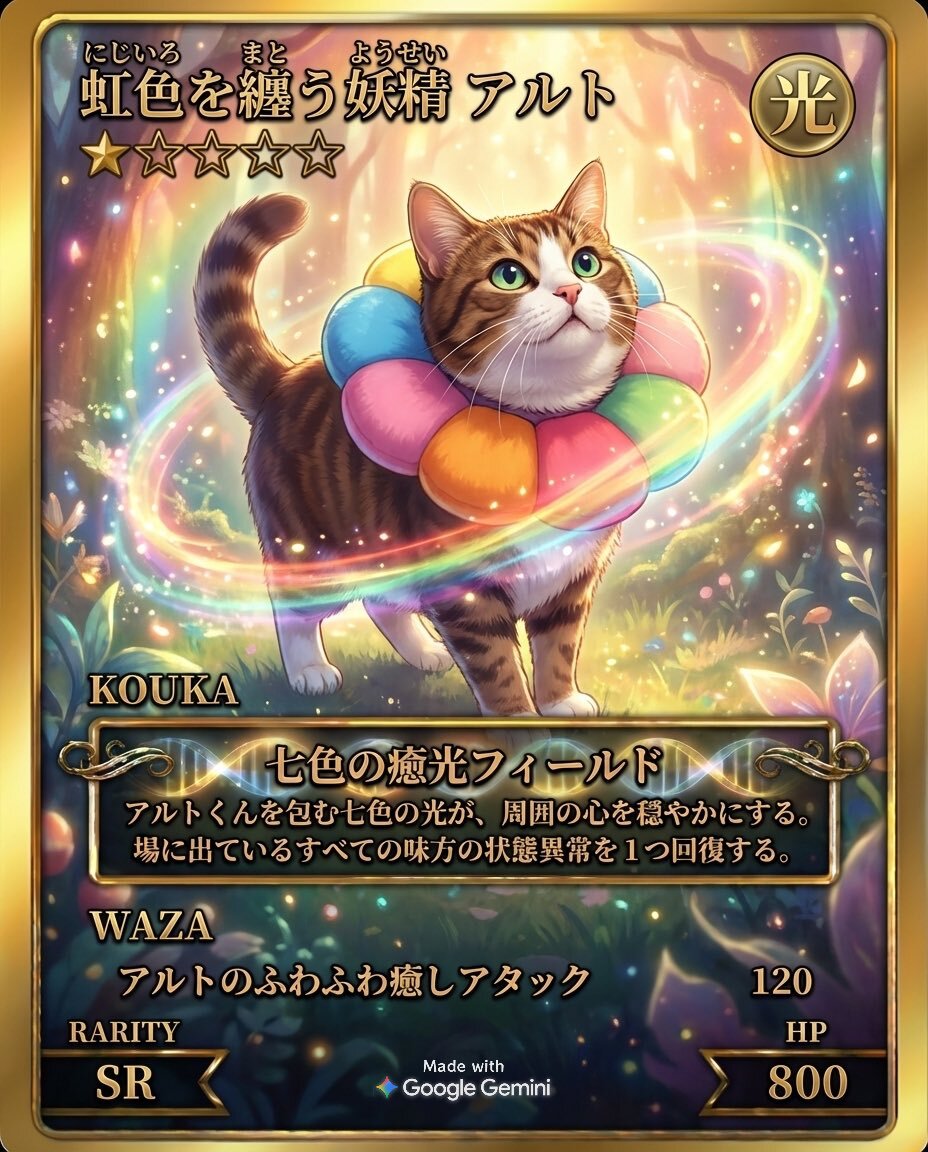 Gemini で新作ゲーム「ペットカードジェネレーター」 を作ったからやってみて! スマホの写真ライブラリにあるペットの写真を読み込ませるとカードになるよ。 script.google.com/macros/s/AKfyc…