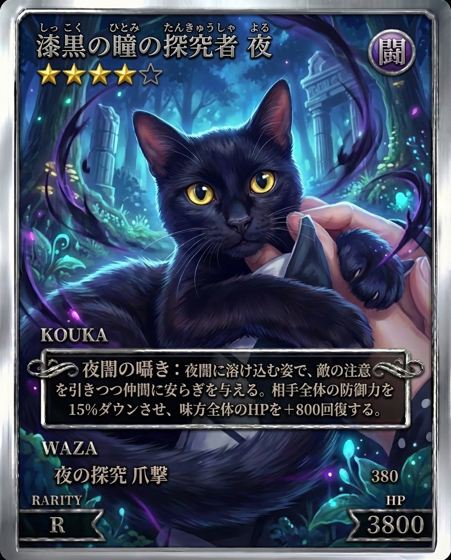 夜くん、強いカードになる。カッコいい…😳 #ペットカードジェネレーター #黒猫同盟 #ねこのいる暮らし𓏲𓎨 #猫好きさんと繋がりたい pic.x.com/Zc14299vmr x.com/nodacry/status…