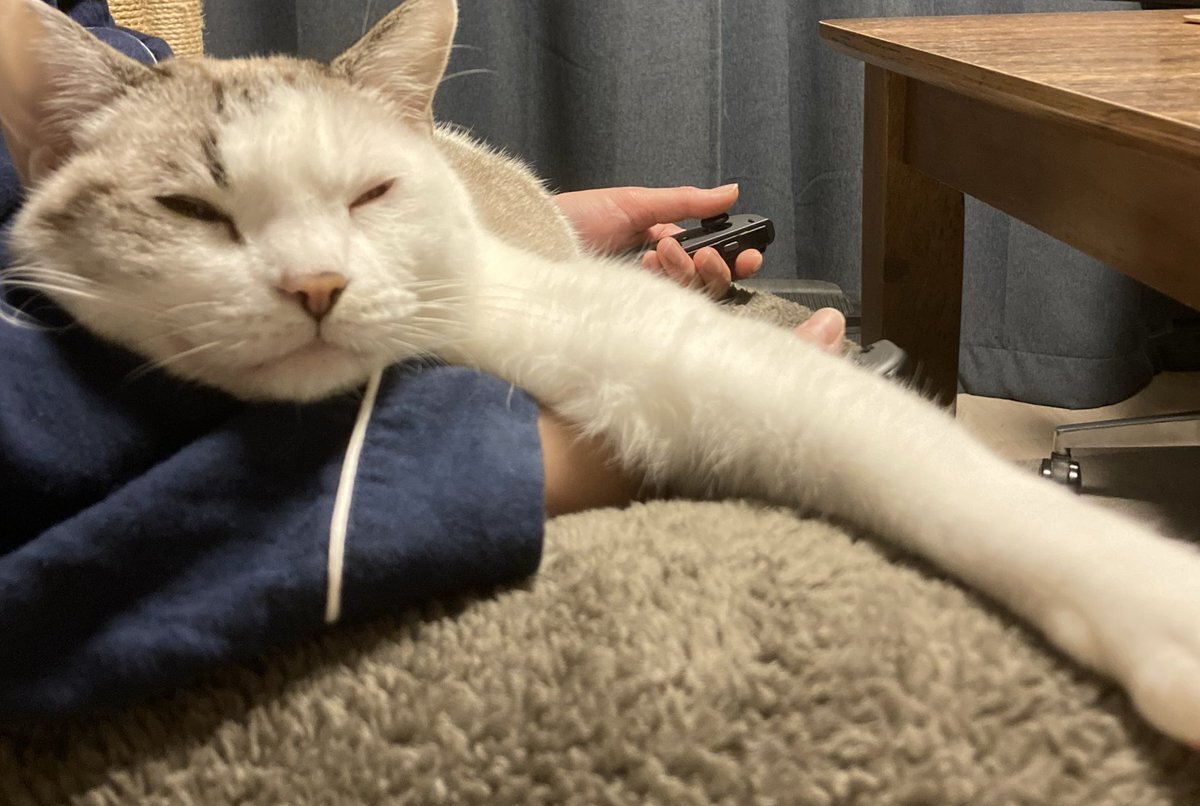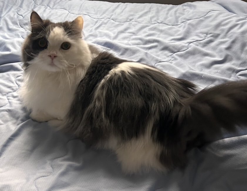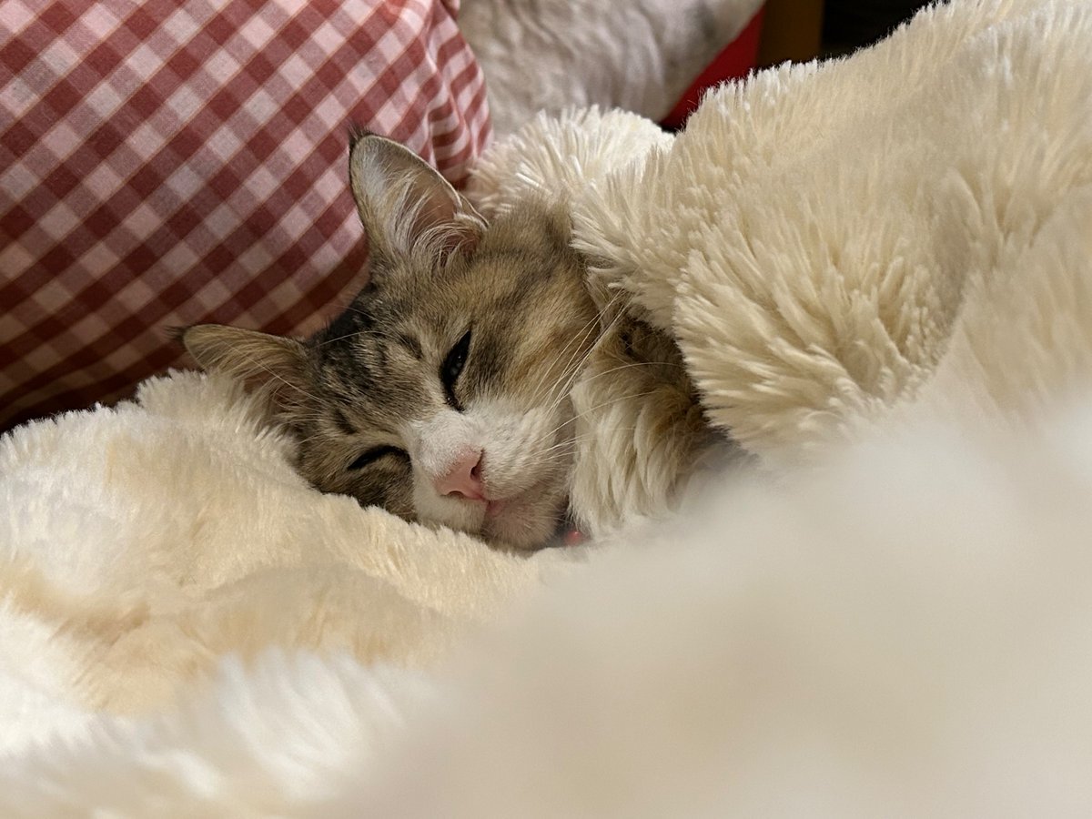 おうち帰って、ベッドの真ん中でスヤスヤ寝てるみおんちゃんを「ただいま」って起こす瞬間幸せを感じる……😽🫶 #保護猫みおん #はちわれ #猫画像 pic.x.com/STqzpujbNa