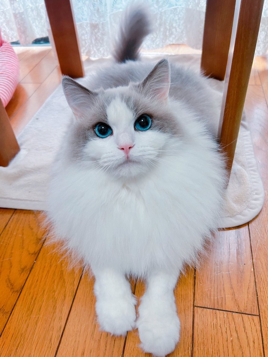 おはようございます🌞 朝からテープを転がして大暴れし、誇らしげな顔のまぁちゃんです✨ #ラグドール #猫画像 pic.x.com/2oOPP4StGR