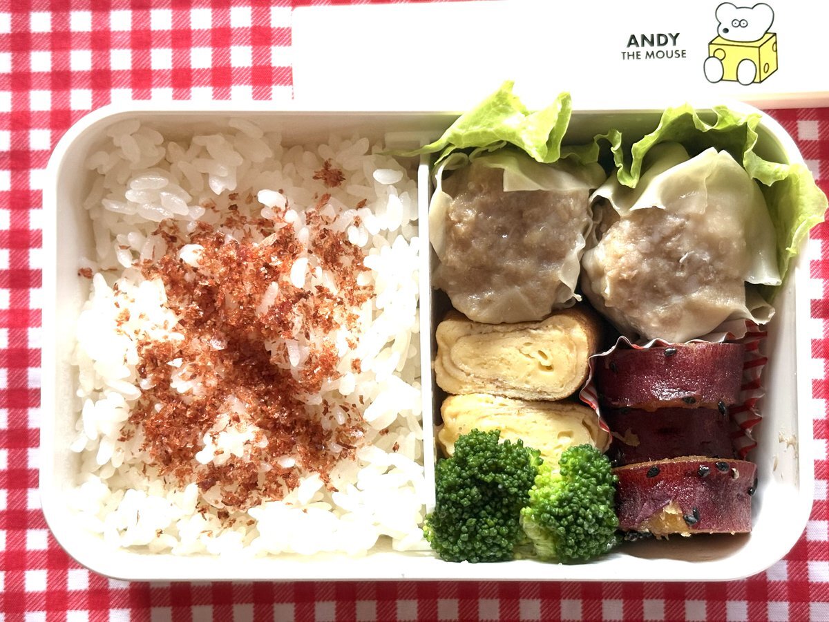 367個目【シュウマイ弁当】 #シュウマイ #玉子焼き #さつまいもの甘露煮 #ブロッコリー #鰹ふりかけごはん とうとうエアコンの暖房スイッチ押してしまいました。もう少し抗いたかったー😅 #お弁当記録 #女子高生お弁当 pic.x.com/lhIzHeEcQ7
