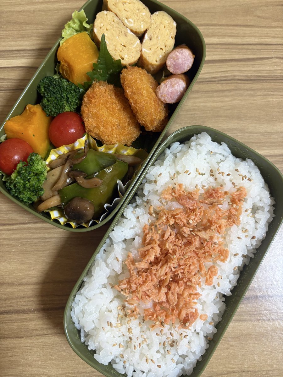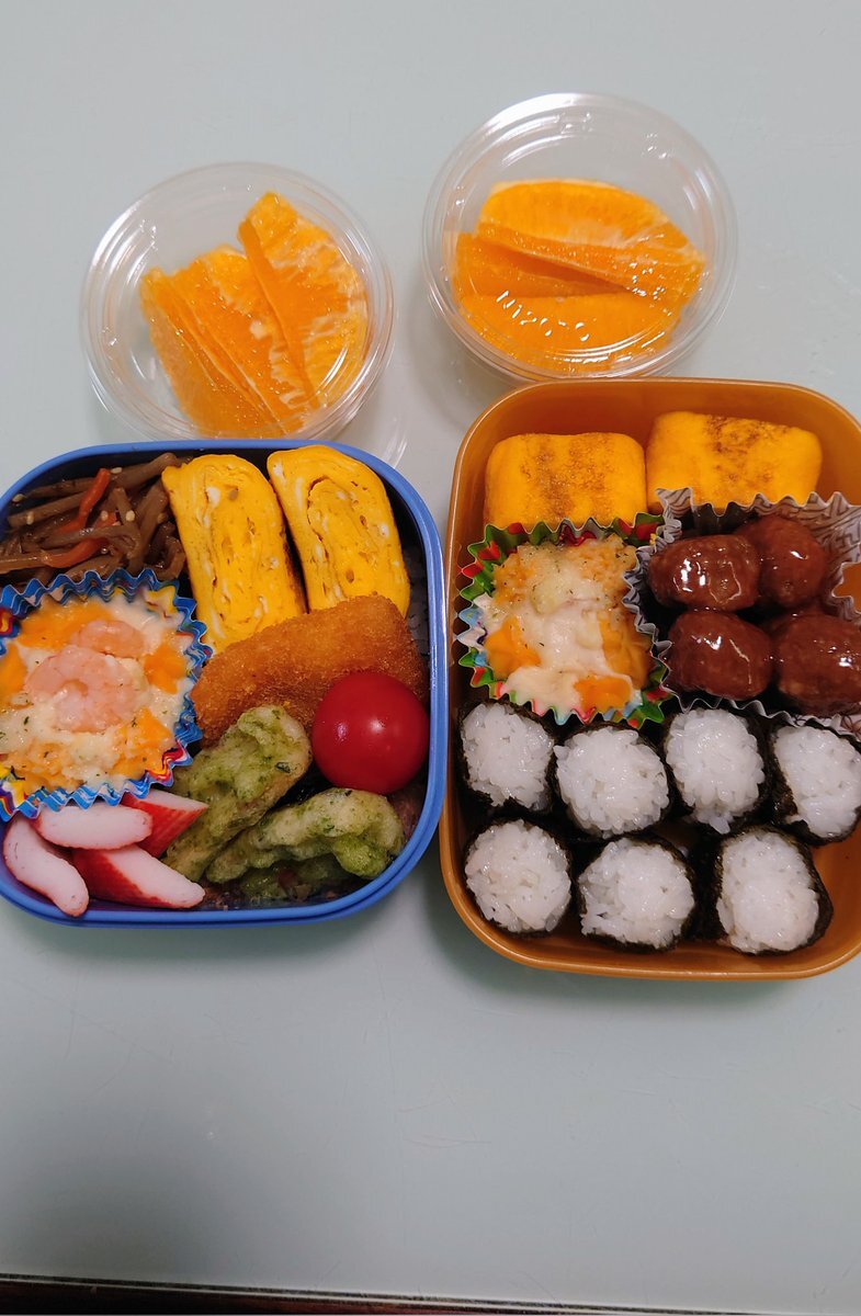 昨日と今日と学校行事があってお弁当🍱✨ 長男のり弁🖤次男好きな物だけ弁💛 「玉子焼きが美味しかった!」と言ってもらえると嬉しい😉 だって他はレンチンだもん😁 #お弁当 #玉子焼き pic.x.com/iJECAYgk6p