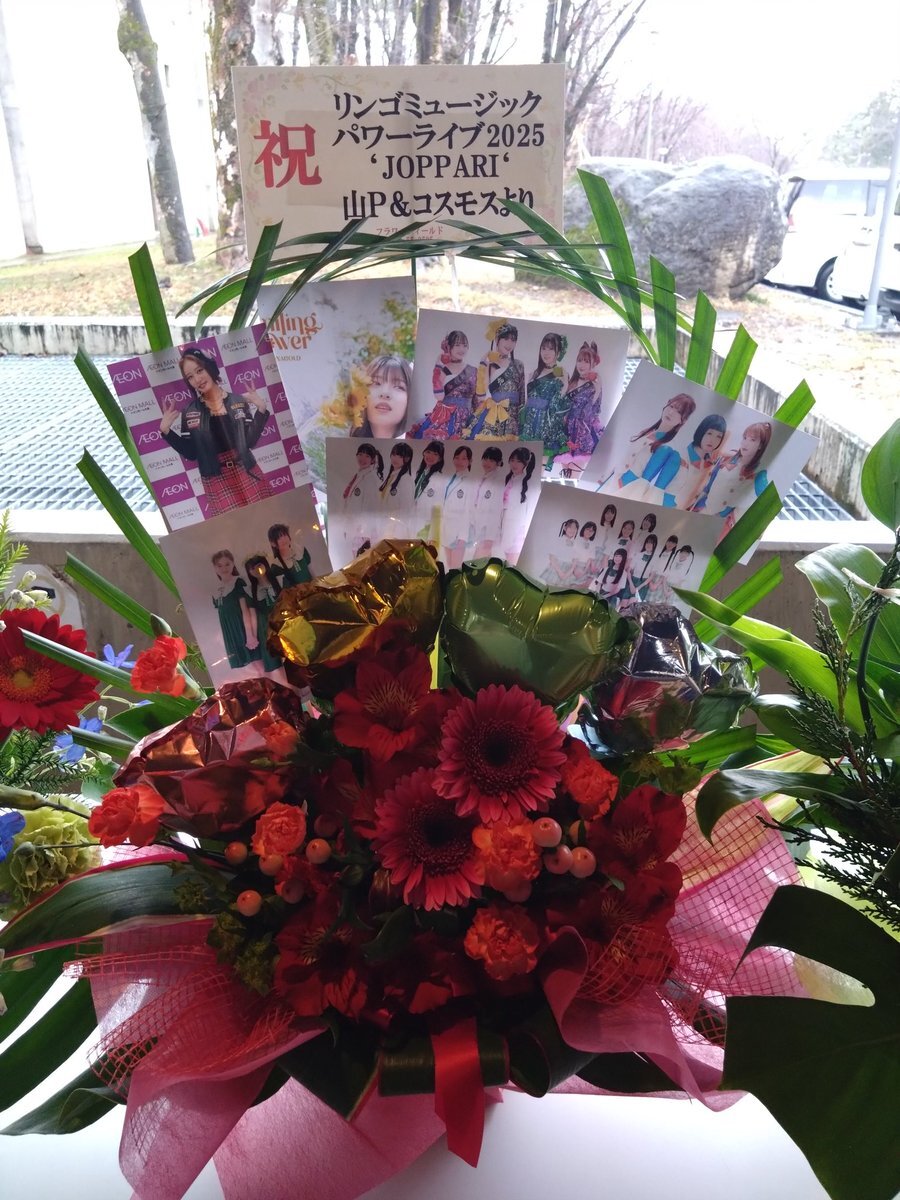 #パワーライブ2025JOPPARI #りんご娘 #ライスボール #ジョナゴールド #アルプス乙女 #王林 #リーフ #クローバー 知り合いの方と並んでお祝いのお花…良かった〜 pic.x.com/BKLLutV8M1
