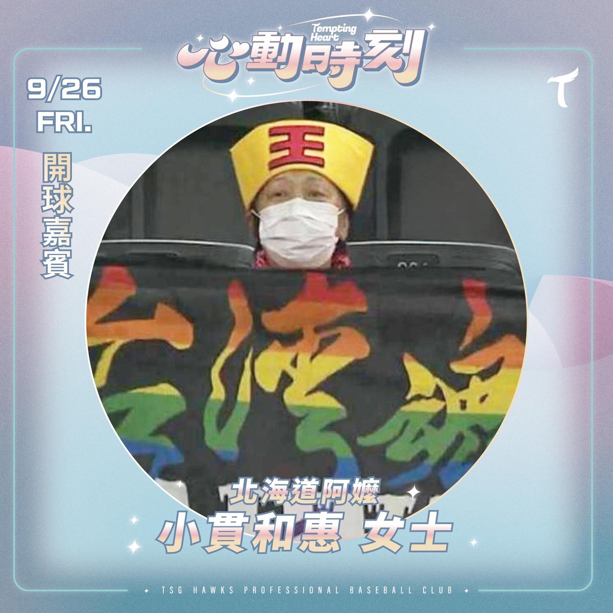 北海道のおばあちゃんが「大王席」に登場!王柏融選手&台鋼ホークスを熱く応援🔥 9/26は小貫和惠さんが始球式に登場⚾️ 「王柏融選手を皆さんと一緒に応援する事ができる日が待ち遠しいです。」 🎬祝福動画👉youtu.be/k8iU75M22t4 #台鋼ホークス #王柏融 #北海道のおばあちゃん pic.x.com/Y6Tx1zoSPd