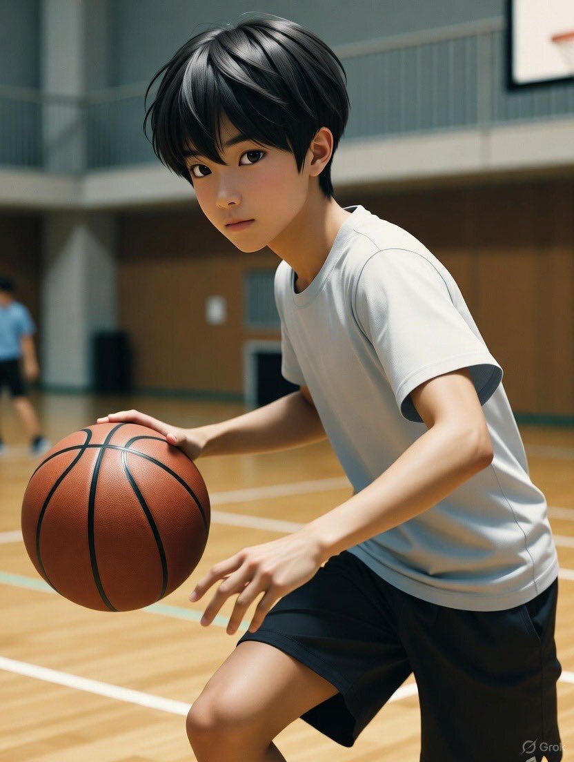 今日ラストの画像。#バスケ🏀は #球技 でも一番、苦手なスポーツ。高校二年生のときの #実技テスト は一番ヤバかった😂だから、もう一度、#Grok @grok と作成さてみた。 pic.x.com/RfJ55Xv80c