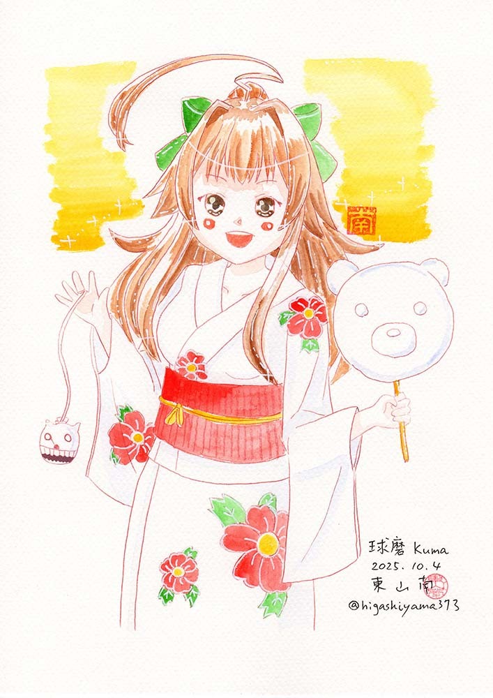 クッマァ~♪ 今日も頑張るクマ♪ #浴衣 姿の #球磨 です とっても可愛く描けて大変満足しております😆👍✨ 形の良いおむねも会心の出来です🥰 #艦これ #アナログ絵 #透明水彩 pic.x.com/BDflSzAyMd