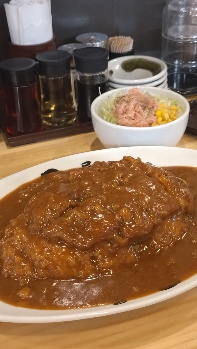 近くに日乃屋さんができててビックリ😲 都内でたときはタイミング悪くて入ったことなかったです 24時間営業ってすごいなーと思いつつ 堪能してまいりました なるほど、こってり甘辛なんですねー😆 思いのほか量があってうれしい 月1で食べたくなるな、この味は✨️ #日乃屋 #名物カツカレー #瑞穂町 pic.x.com/jsbQrCTTPg