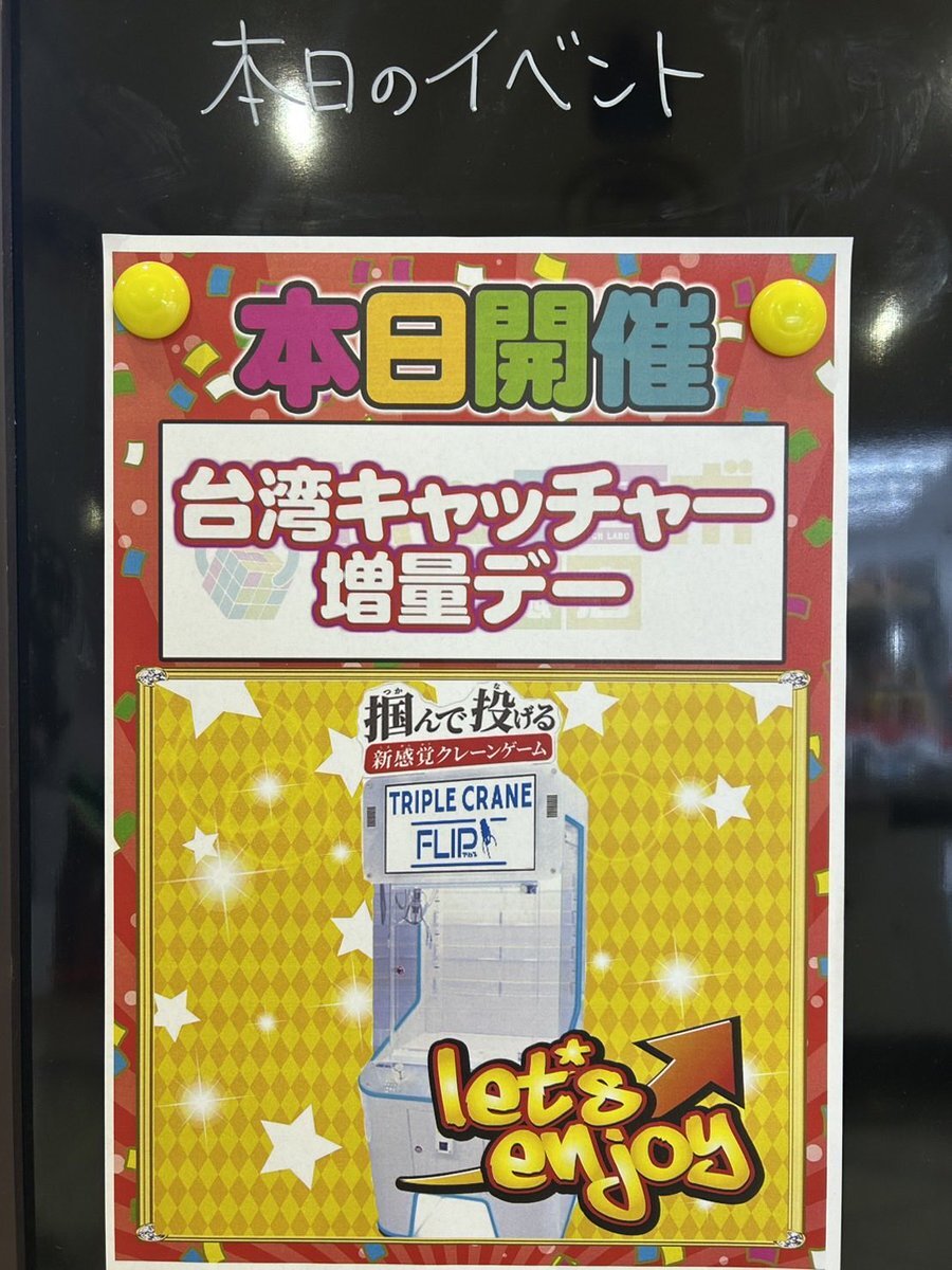 🎪本日のイベント🎪 こんにちわ〜ん🐶くらげです🪼 本日台湾キャッチャー増量デーとなっております! スタッフ一同頑張って盛ります! 盛り直し等お気軽にお声掛けください!!:🪼:ハワワッ #キャッチラボのイベント #キャッチラボでまってるよ〜 #瑞穂町 #台湾キャッチャー pic.x.com/nMrbhkoosV