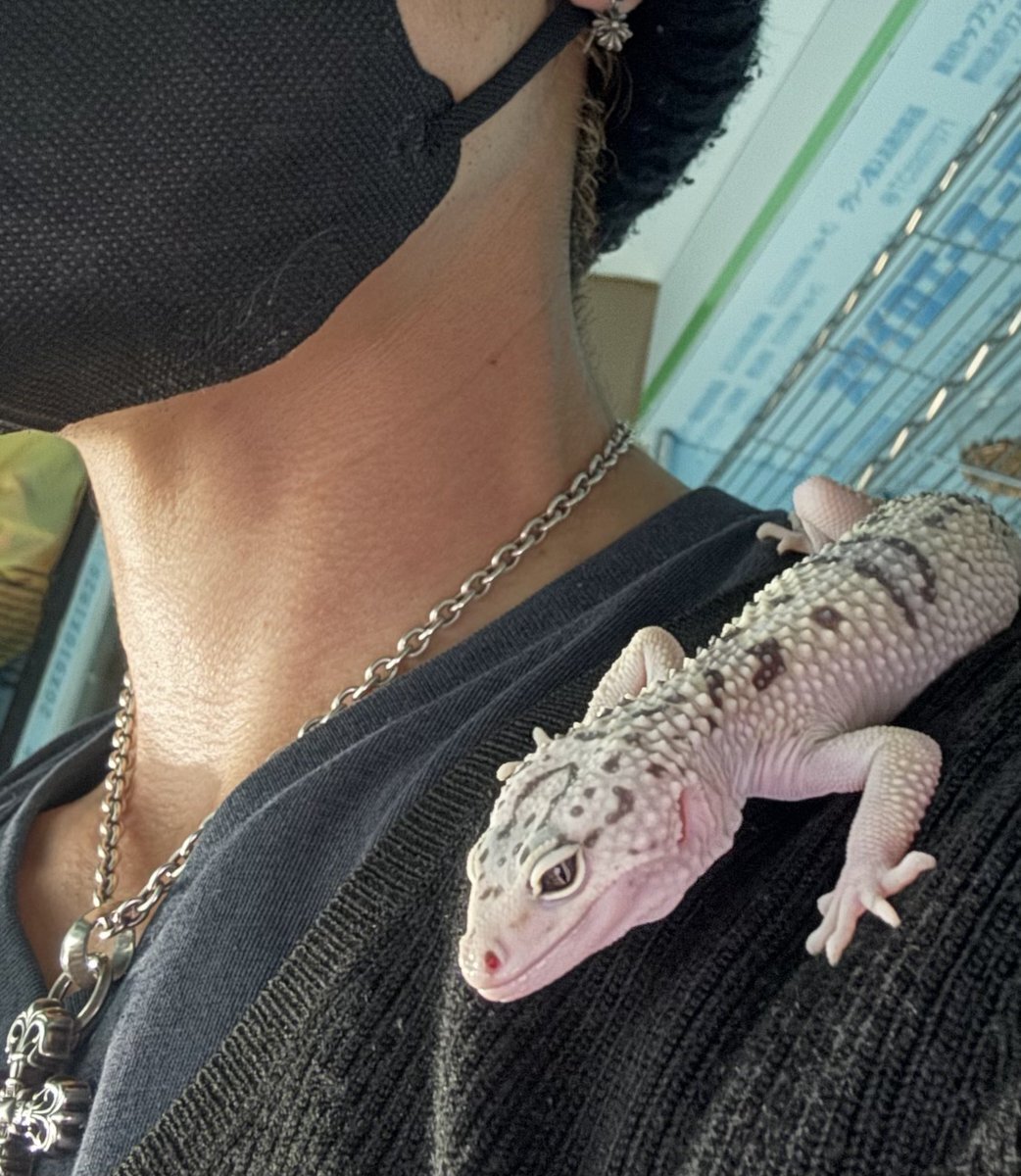 2025CBのオバケトカゲモドキ・イーラム③🦎 肩の上がお気に入りなのか1時間以上居座る事も多いです☝️ この子も身体は大きくて成長が楽しみです🤭 #爬虫類 #オバケトカゲモドキ #ヤモリ #生き物 #動物 #自家繁殖 pic.x.com/D6YpI1ExwM