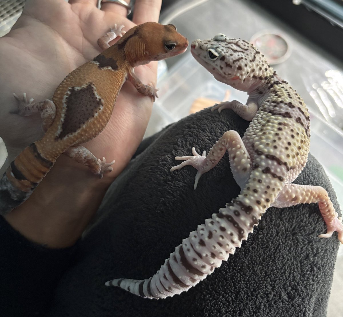 ほぼ同じ月齢の2匹🦎🦎 尾を見れば分かりますが警戒してないですよね☝️ 見た目や種は違くとも通じ合うものがあるんでしょうかね🧐 #爬虫類 #オバケトカゲモドキ #ニシアフ #ニシアフリカトカゲモドキ #ヤモリ #生き物 #動物 #自家繁殖 pic.x.com/xlawnAvL9A