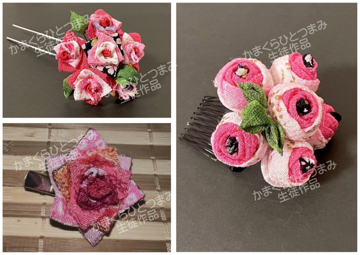 秋バラの季節になりました おけいこ場でもバラが人気です #つまみ細工 #生徒作品 #玉バラ #庚申バラ #三角バラ 薔薇が三種類そろったの久しぶりに見ました。 pic.x.com/WtcQHhyj1n