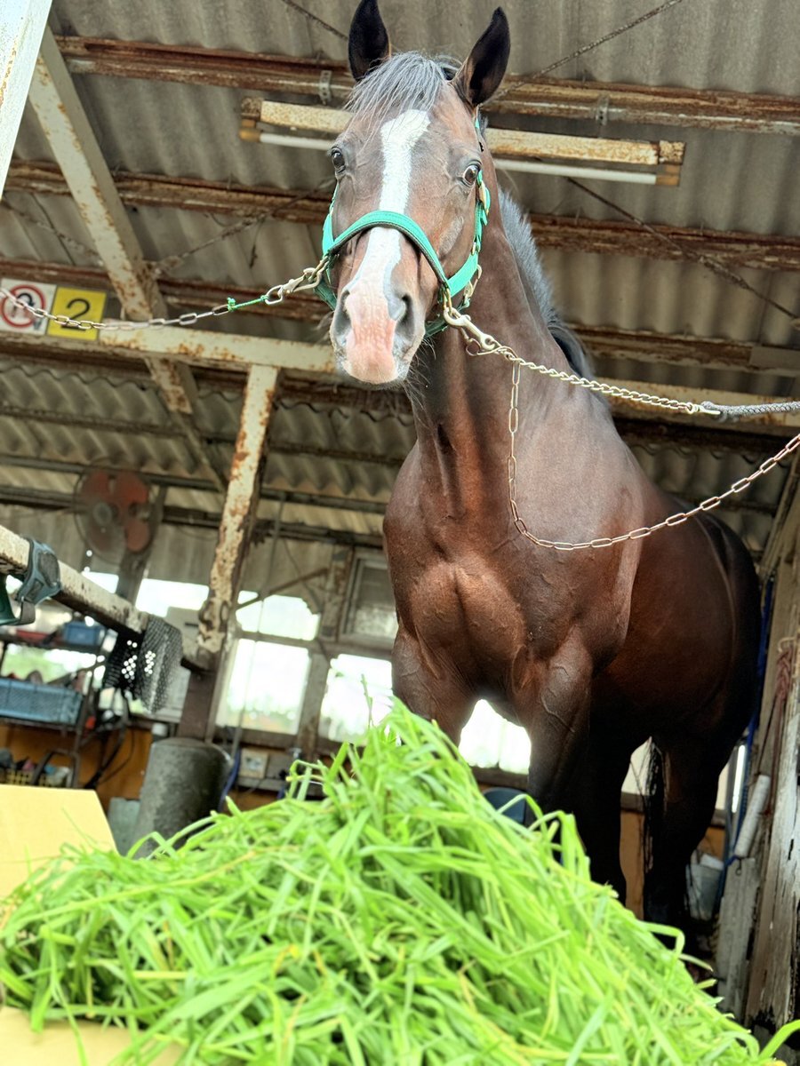 #リグヴェーダ に #生牧草 が届きました!お仕事後だったので今回は繋ぎ場で! カメラを構えながら牧草を持っていくと、目を見開いて待ち構えてました👀✨ 表情の違いにご注目ください😂 福岡県M様、いつもありがとうございます!! #大山乗馬センター #ディープインパクト産駒 pic.x.com/PxWw0SEmqs