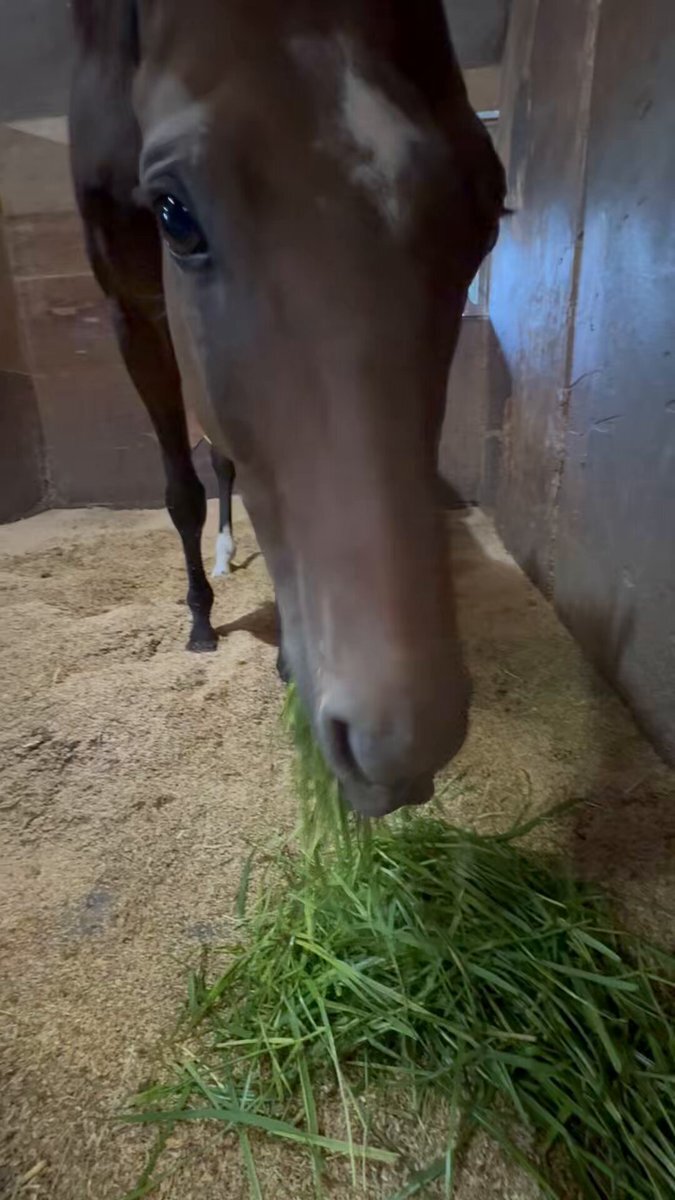 ゆーっくり噛んで食べるゴッちゃん至福の時🍀✨皆さんありがとうございます 在籍中の馬達一頭一頭にもあげてます 載せてない🐴もいますがきちんとあげてます みんな大喜び🥰感謝です #生牧草 #ゴッドホーネット #至福の時 pic.x.com/CXQqVOkLuS