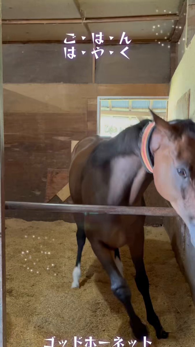 ヤマトのお兄さんに反応の舞い😍 ゴッちゃん人気が止まらない😆💦💦💦 #RYOMAステーブル #ゴッちゃん #ゴットホーネット #元気舞い #生牧草 #ありがとう x.com/StableRyoma/st…