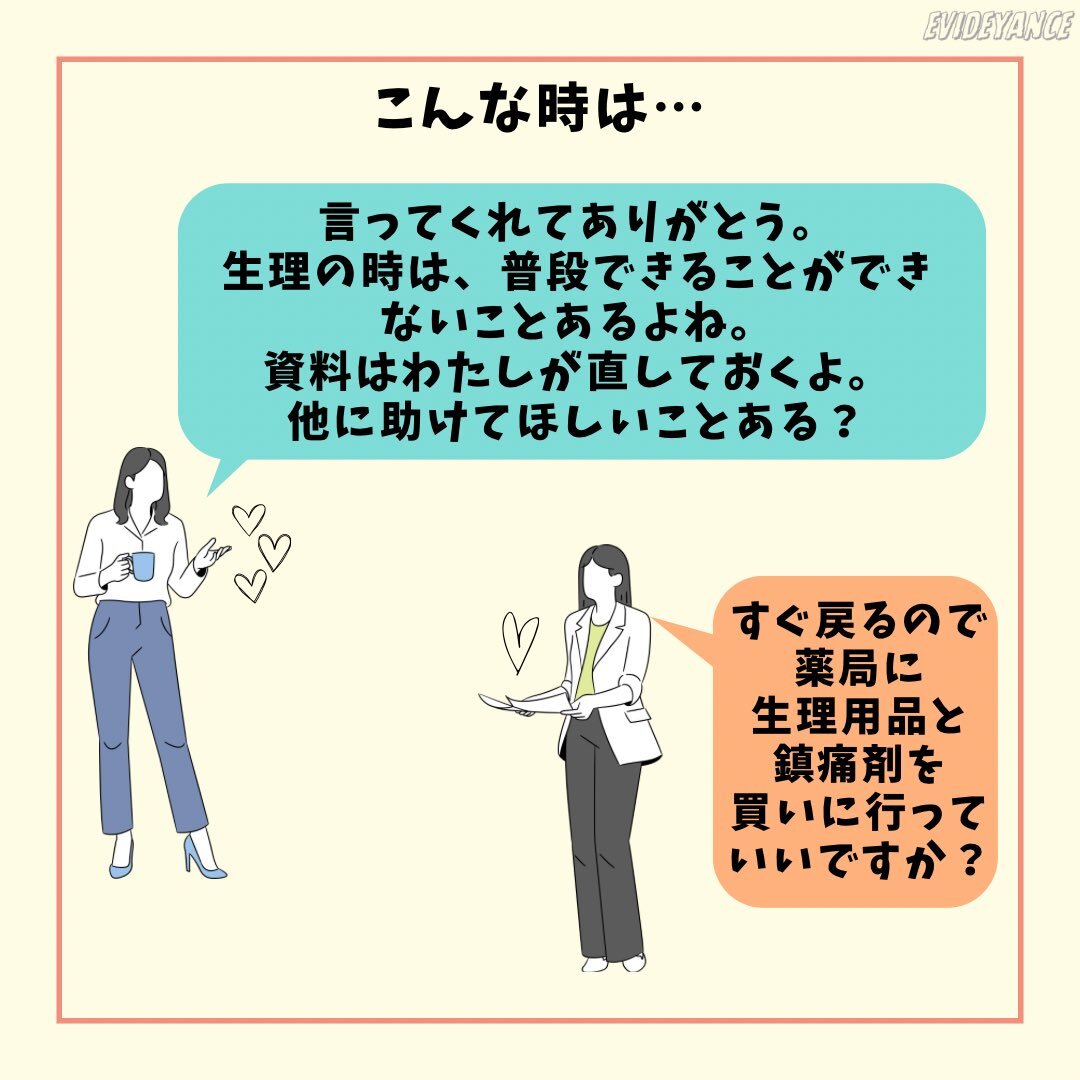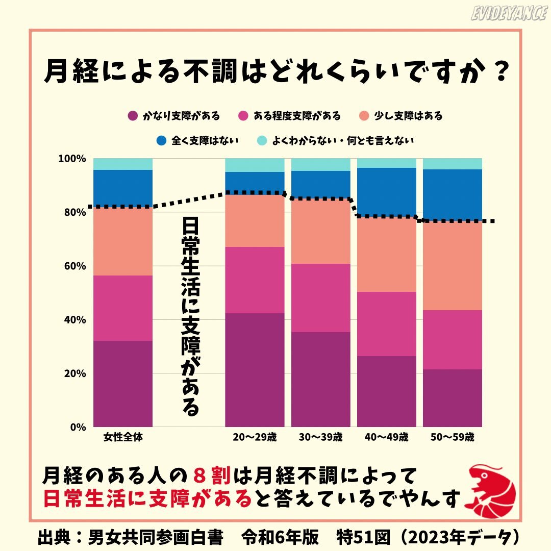 月経って人によって全然症状が違うらしいけど、日常生活に支障があると答えた人が80%を超えるんだって。まずは優しい声掛けで、つらいことを言いやすい雰囲気づくりから始めるでやんす #エビでやんす #月経 #生理 pic.x.com/JxHrxVXy2I