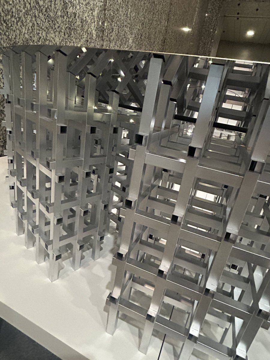 【大阪市役所で大屋根リング模型展示中】生野区のものづくり企業「現代工業」が製作した「板金製大屋根リング」が市役所1階東玄関ホールで公開中! 直径2mの1/300縮尺モデルで、1152本の部品を曲げ加工のみで構成。実際の万博会場でも公開された素敵な作品をぜひご覧ください(25日まで)#2025EXPO