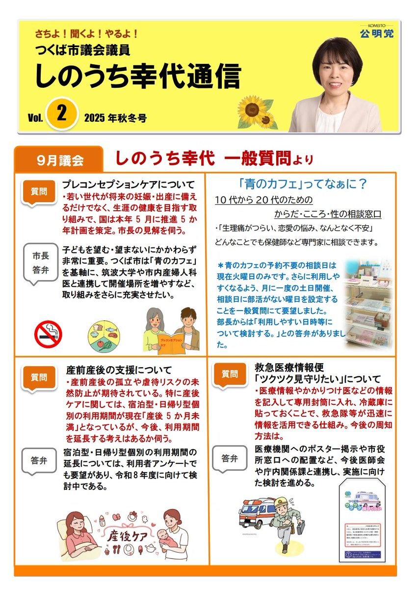 🌻しのうち幸代通信 No.2🌻できました! ・9月議会報告 ・地域実績 ・ペットボトルキャップ回収のボランティア活動 ・お子さんの発達が心配な方と色々おしゃべりする「ひまわりおしゃべり会」のお知らせ ぜひお読み頂けたら幸いです!🙋 #プレコン #発達障害 #産前産後ケア #救急医療情報便 pic.x.com/RmyP2QACFL