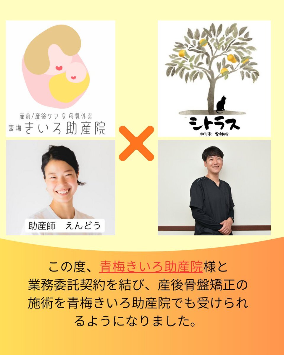青梅きいろ助産院 シトラスほぐし家 産後骨盤矯正 #青梅きいろ助産院 #シトラスほぐし家整体院  #産後骨盤矯正 pic.x.com/4cARXsfSNi