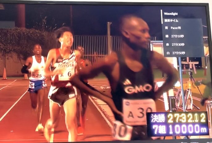 10000m A組 #サムエルキバティ 27分01秒70(1着/PB)大会新記録🥇 #鈴木芽吹 27分05秒92(6着/PB)日本新記録🇯🇵 #吉居大和 27分21秒45(8着/PB) #田澤廉 27分31秒90(13着)