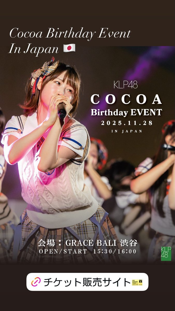 11/28 甲斐心愛さんの誕生日当日に 渋谷でバースデーイベントを開催することが決定しました!! みんなで盛大にお祝いしましょう♪ チケットはこちらから t.livepocket.jp/e/cocoabirthda… #甲斐心愛 #cocoakai #KLP48 pic.x.com/G6DfiLORZx