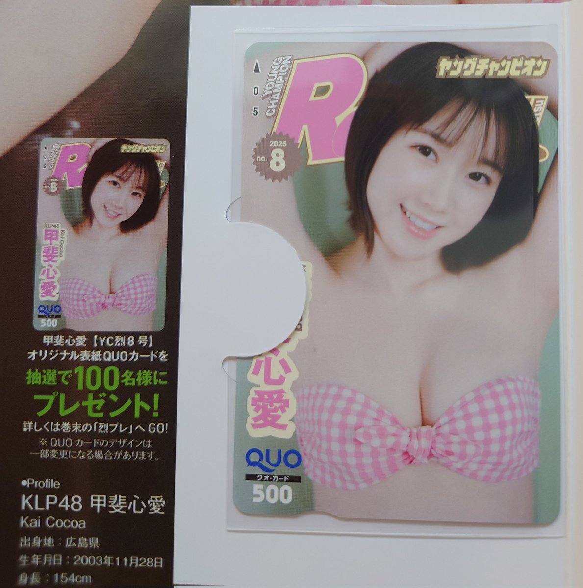心愛ぁ〜♥ #甲斐心愛 [YC烈8号]オリジナル表紙QUOカードが、当たったよぉ~〜🎯 #ヤングチャンピオン烈 #KLP48 #kaikokoa #ここあ通信 pic.x.com/S4KclXFqdr