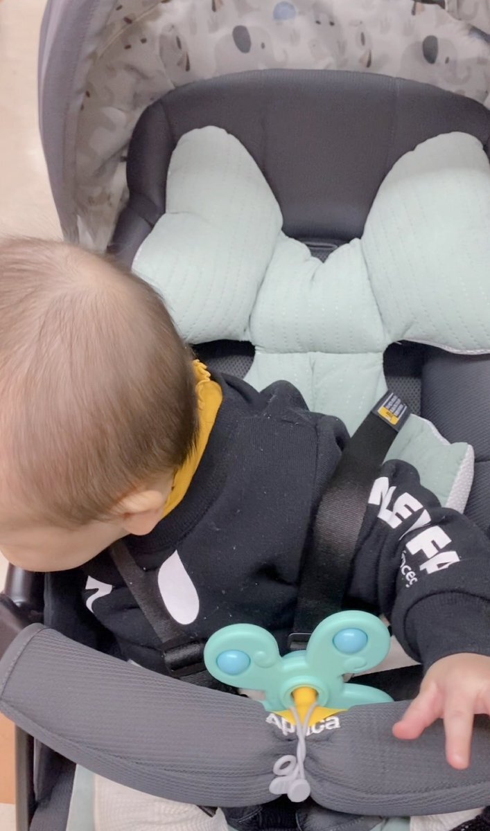 *今日のひーさん*埼玉に無事おかえり。私が載せると嫌がるチャイルドシートなのに夫のときはすんなり(なぜ)。久々のお家に喜びが隠せず楽しそう。しかしまた1週間後に行くのよ、、ごめんよひーさん。#男の子ベビー #11m13d