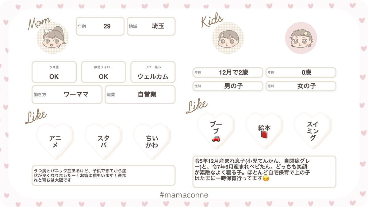 プロフィール書けたので投稿♡ 最近Xのママ垢作りました🥰 ママさんの友達いないので、気軽に絡んでほしいです❣️ 顔はほとんど隠して子供の写真も載せてます🤍 #mamaconne #1歳 #0歳 #男の子ベビー #女の子ベビー #ママ垢プロフィール #ママ垢さんと繋がりたい pic.x.com/tAyPKeF14a