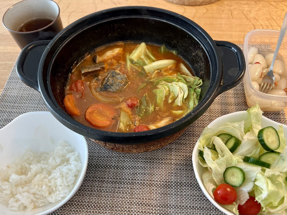 昨夜のカレー鍋の残り汁に鯖缶と残り物野菜ぶち込んでスープカレー😅 雑穀米の冷凍保存分が切れてて白米になってしまったのが気になるけど、、、w まぁそのほかの栄養素はいい感じにバランス取れてるのでヨシ! 因みに今朝測ったらこの1ヶ月で3kg痩せてた😃 #男の料理 #食事療法 pic.x.com/xeRlSsGGlV