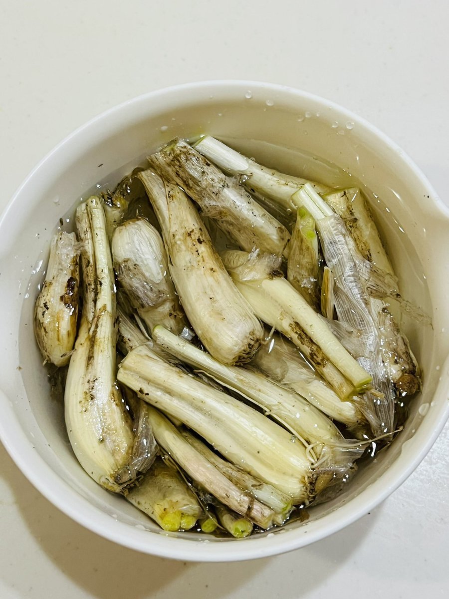 男の料理番外編 今回は、島らっきょうの塩漬けと塩麹漬け 沖縄で買った、土付き生の島らっきょうを、薄皮剥いて漬けました。 生でも食べれて実食したけど、お口の中が島らっきょう臭 オリオンビールのおつまみに最高‼️ んま〜😋 #男の料理 pic.x.com/HdAvErcy0E