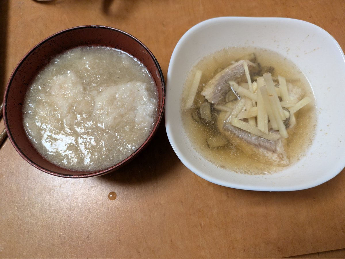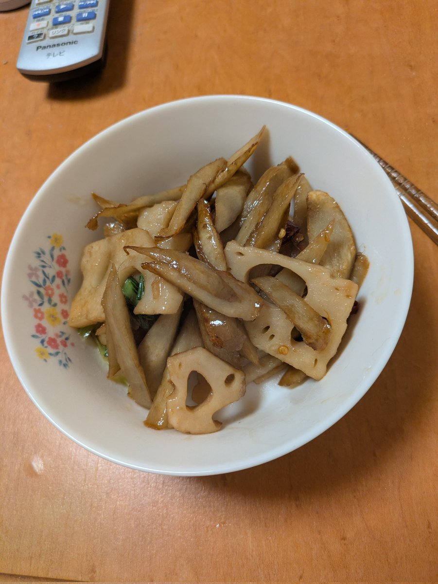 お夕飯にキンピラと煮魚食べました。 キンピラはピリ辛位が丁度いい。 汁物は、レンコン団子の汁物ですがレンコン団子が、ちょいと崩れちゃいました。先にレンコン団子を作った方が良かったみたいで。(*´ω`*) #お夕飯 #男の料理 pic.x.com/ADNTRCuFUs