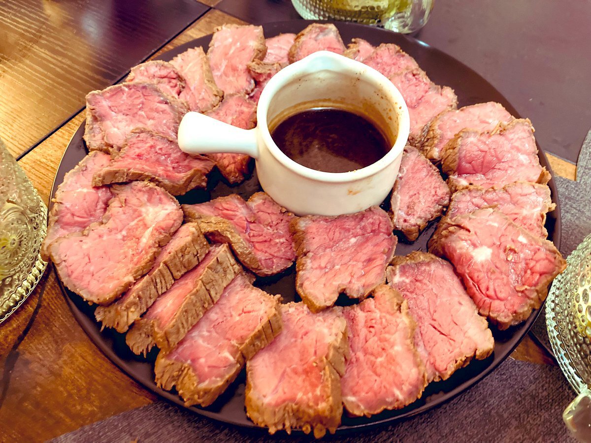 #男の料理 娘のリクエストでローストビーフ🥩。焼きムラができてしまい、一部、牛肉のタタキみたいになってしまうのが今後の課題。肉好きの妻も娘もよく食べてくれたのでよかったですが。 pic.x.com/DMxqoqwPGb