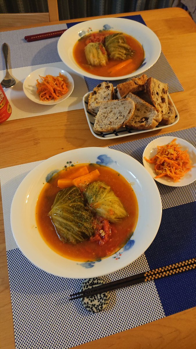 昨夜、今夜と2日間 趣味の【男の料理】を…🎵 今回は『ロールキャベツ』(^^) 1日目はチキンコンソメベースを! 2日目はトマトピューレを入れて味変! ラストは残ったスープでリゾットを❗ いやぁ、美味しかった\(^^)/ #趣味の料理 #男の料理 #ロールキャベツ pic.x.com/F1wvCARZPx