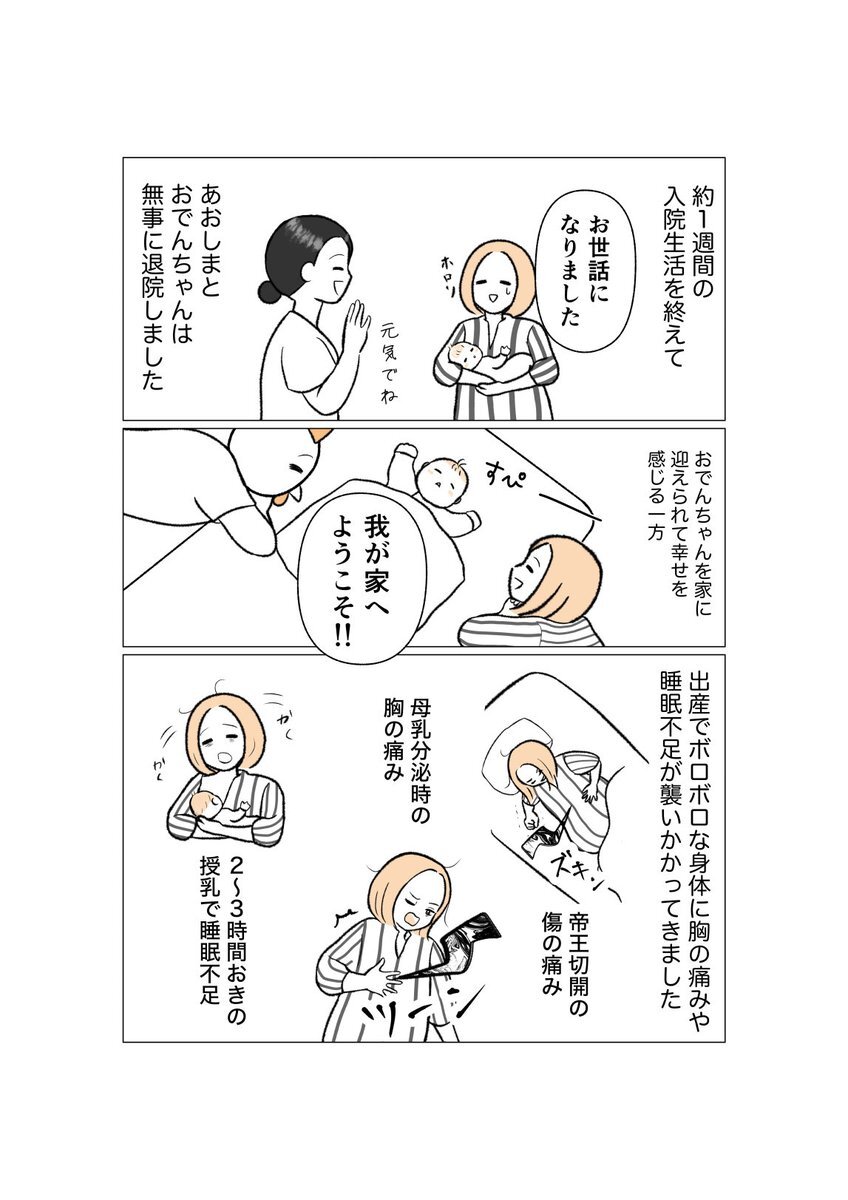『夫婦で育休1年』第9話 更新🌟 ついに退院して家族3人での生活がスタート! おでんちゃんを家に迎えられて幸せいっぱいのはずが、 あおしまの身体は想像以上にボロボローーー!? #夫婦で育休1年 #男性育休 #漫画が読めるハッシュタグ pic.x.com/fqw0TILy3V