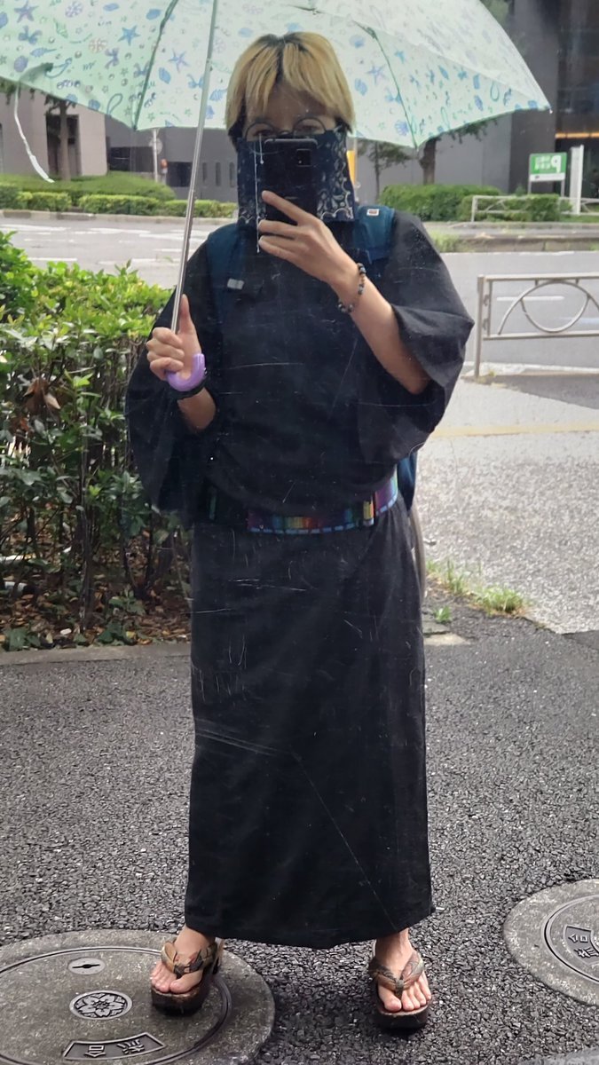 鏡張りのいつものとこ。 まだまだ暑くて浴衣が手放せない。 安定のスーツケースベルト。 途中で雨降って来て、降ったり止んだりしたが、大した事なかった。 #男の着物姿 #我流流 #着物自画撮り部 #kimono #着物 #男着物 #着物男子