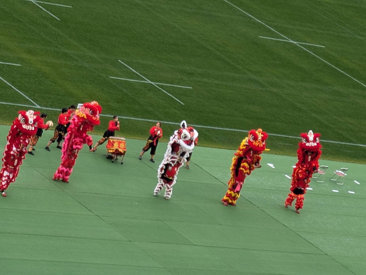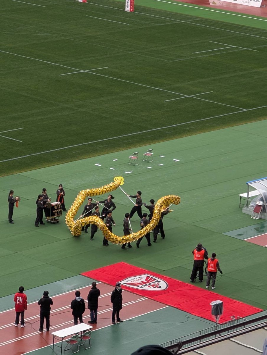横浜キヤノンイーグルス開幕戦 #ラグビー 日産スタジアムに太鼓の音が鳴り響く中👲 横濵中華街より 龍舞🐉獅子舞の出張パフォーマンス #祝舞遊行 #採青 横濱、冬の風物詩 2026春節燈花chinatown.or.jp #異国情緒 #多文化都市 x.com/canon_eagles/s… pic.x.com/vFeZ3ceExR x.com/canon_eagles/s…