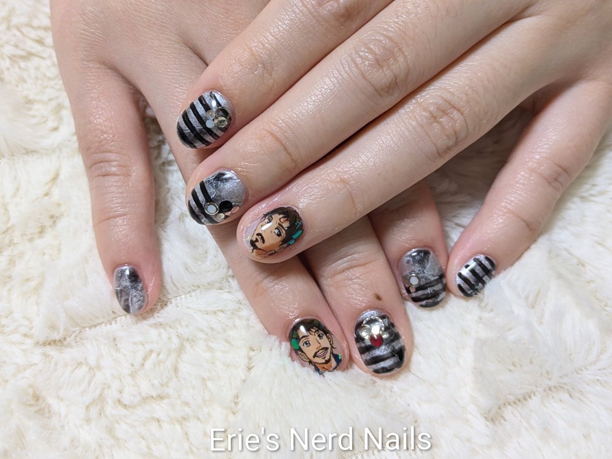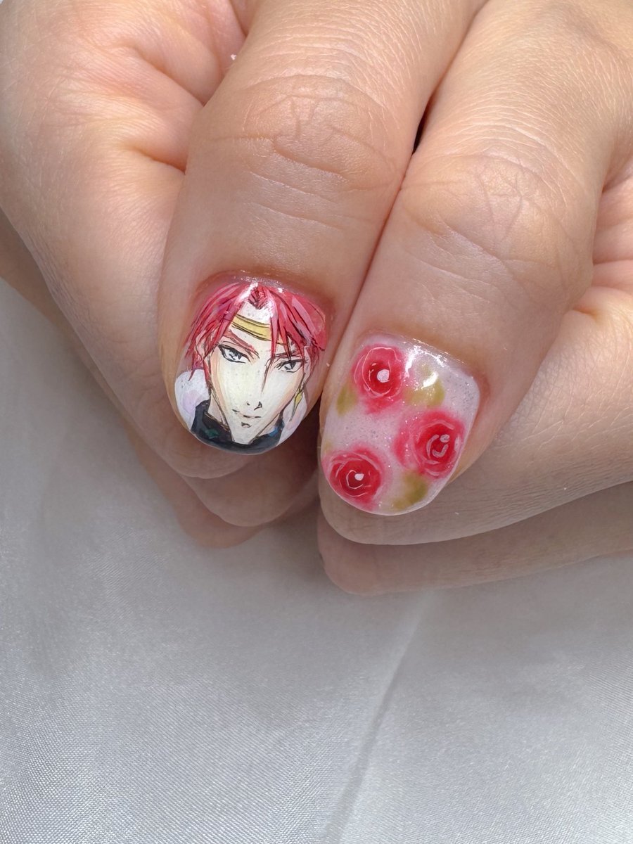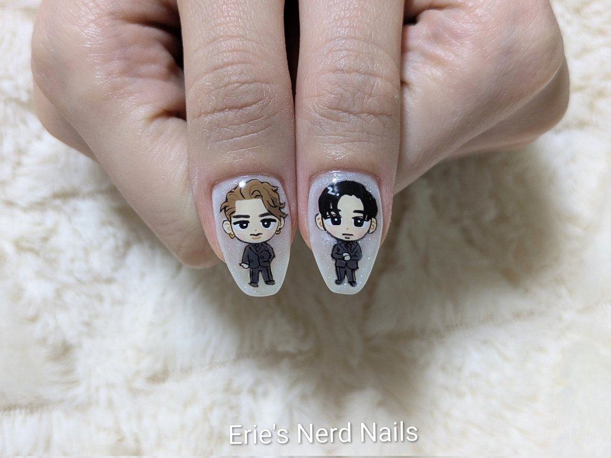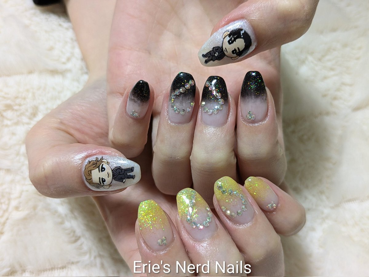 やっと左手分できた🎨 昨日面白いタグ見付けたから付けとこ♪ 映画観に行けるの来月になるけどめっちゃ楽しみ♪ #セルフジェルネイル #痛ネイル #おめでとう直哉くん pic.x.com/xJTJVJec2J