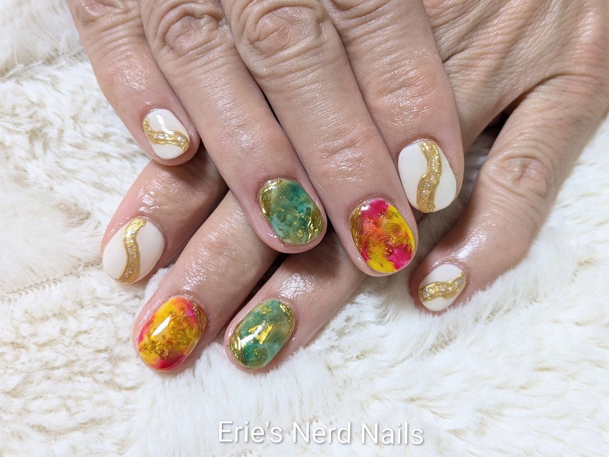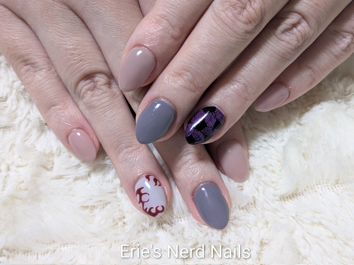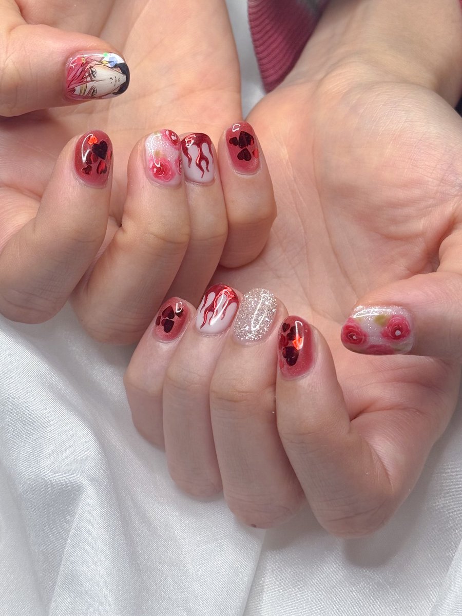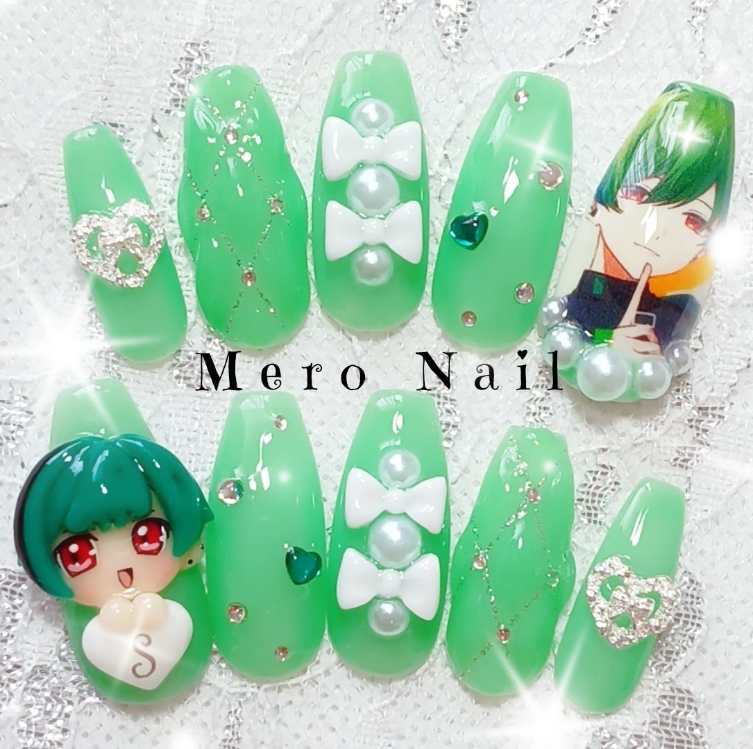 やっと左手分できた🎨 昨日面白いタグ見付けたから付けとこ♪ 映画観に行けるの来月になるけどめっちゃ楽しみ♪ #セルフジェルネイル #痛ネイル #おめでとう直哉くん pic.x.com/xJTJVJec2J