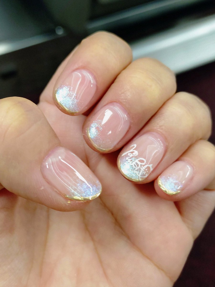 人生初のネイルサロン💅★* 仕事柄、原色系やパーツがNGなので、爪先にゴールド、青いラメ(光の当たり方でラメの見え方も変わる✨)でフレンチネイルっぽく。 左手薬指に陸王様のサインを入れてもらいました😊 #ゴジュウジャー #リクオニスト #痛ネイル pic.x.com/Y0t2vYEOno