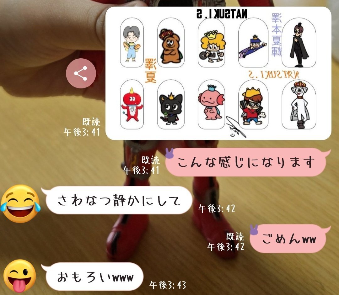 ネイルシールの使い方を教えてと言われてさ、こんな感じで画像作るんだよー!って妹に送ったらこの返しw 言われてみれば…ꉂ🤣𐤔 #痛ネイル #FANTASTICS pic.x.com/1tD9GpnXx9