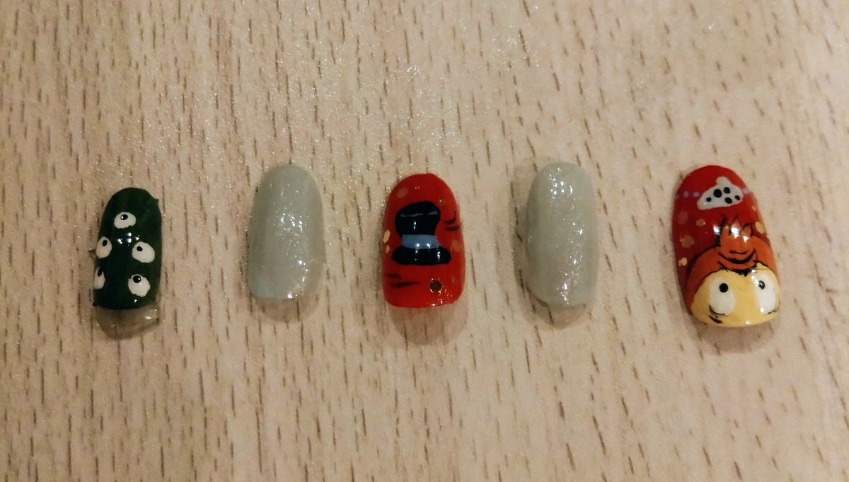 拙いながらも悪魔くん3期チップできたけど… チップ付けるの初めてで「長っ😨」ってなっている 出来は、やっぱ難しいなー😂としかw まぁいいや 明日中に右手につける鬼太郎痛ネイル完成させます #ゲゲゲ忌 #悪魔くん #痛ネイル pic.x.com/uS2c5ZBPLS