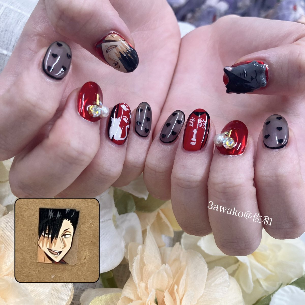 黒尾くん風💅✨️ クロオネコも一緒に☺️ ありがとうございました🙇♂️💕 . . . メニュー内容:痛ネイル1本+がっつりモチーフネイル+3Dひとつ 🌸こちらは【手描きシール】です #痛ネイル #さわこネイル pic.x.com/Rc6fYEDlj4