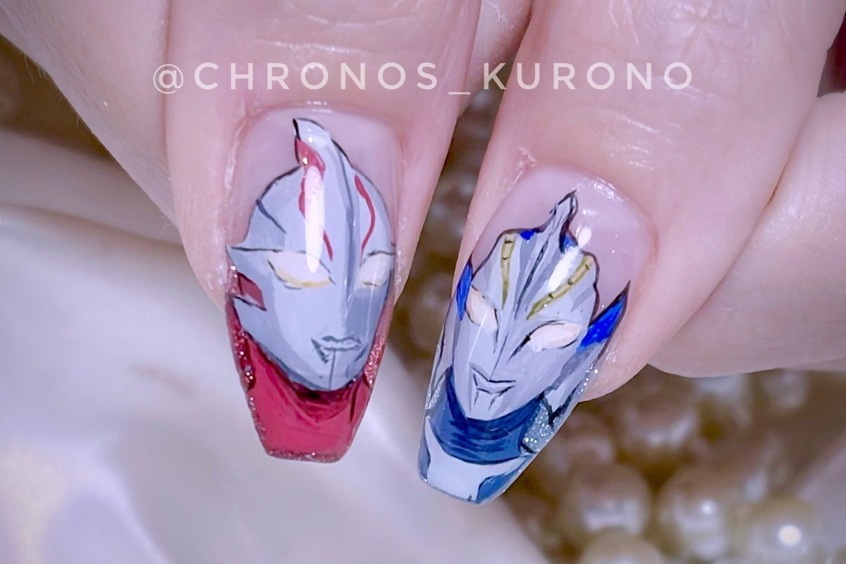 盟友で痛ネイル❤️💙 今回はいつもと違うサロンさんにお願いしました〜 初めて痛ネイルやって貰ったよ〜✨ 細かい書き込みすごい〜🥹 写真じゃ凄さが伝わらないのくやしい🥲 #痛ネイル #ウルトラマンネイル #ウルトラマンメビウス #ウルトラマンヒカリ pic.x.com/xNXWuIXU65