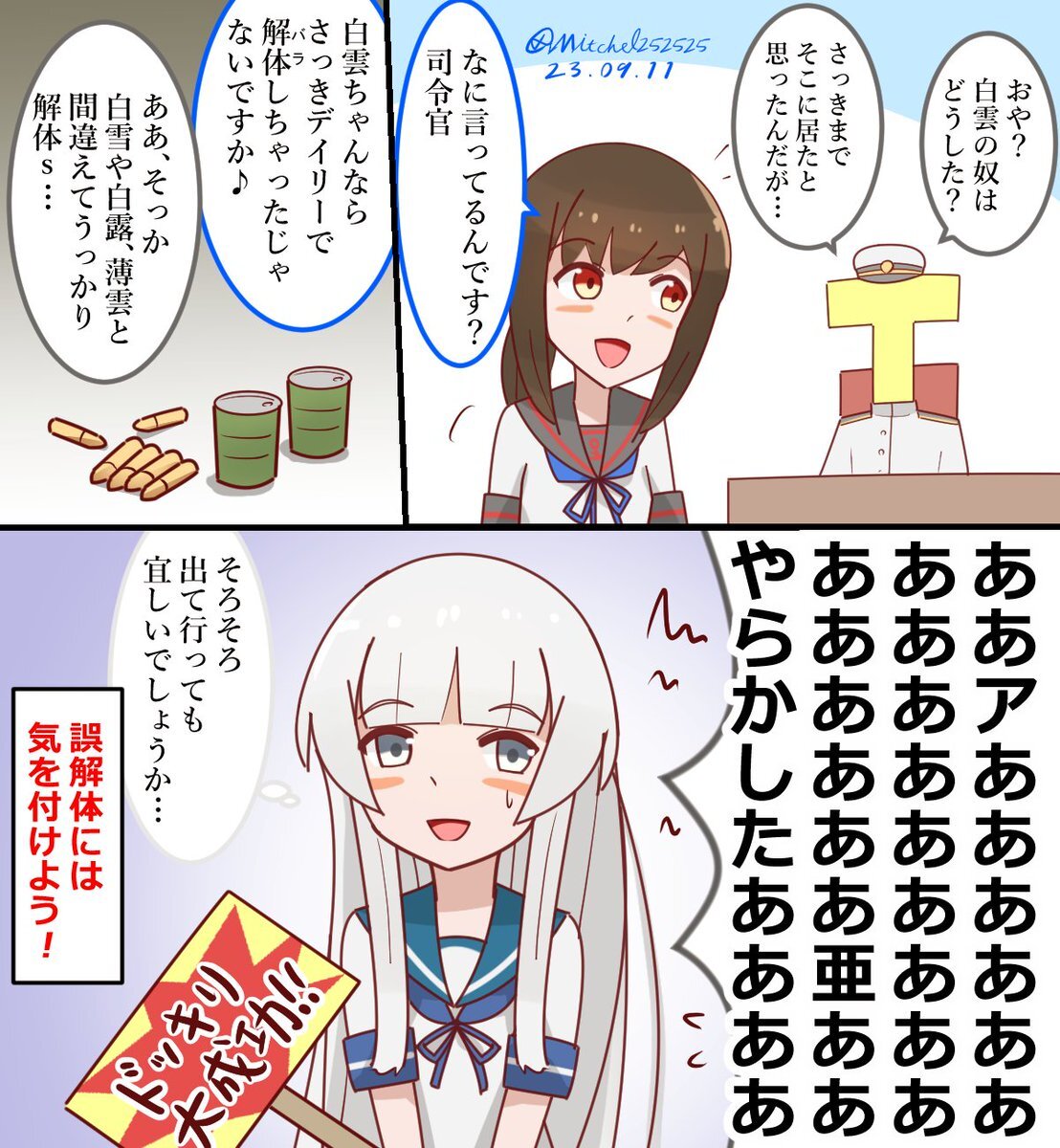 冬コミに向けて描きためてたものがけっこうある…ので… ぼちぼち載せていこうかと… みていただけたら幸いです… #艦これ #白雲 pic.x.com/nHOqqROcHA